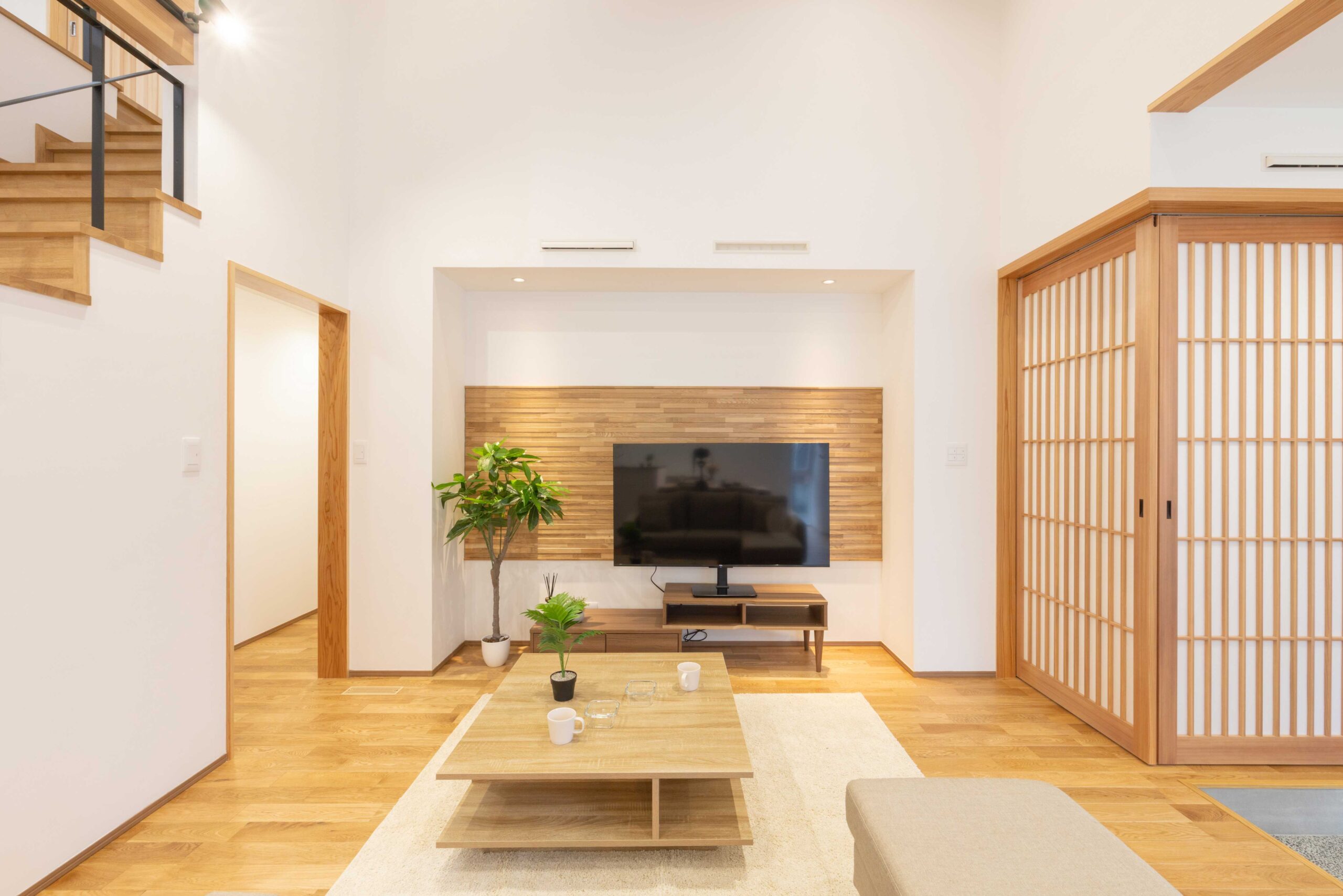 天井・床・建具にバランスよく採用。
